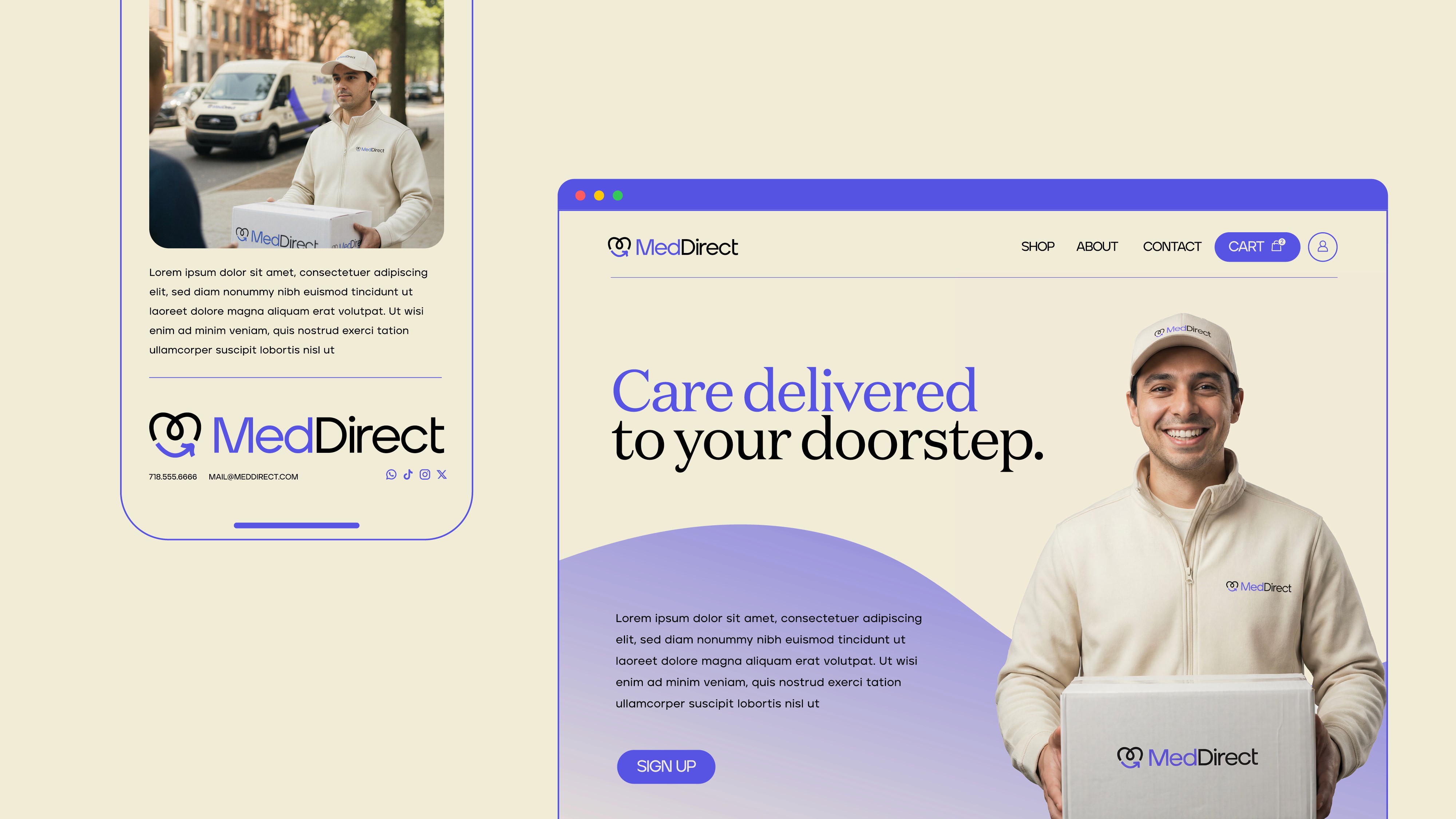 For MedDirect, we developed a visual identity that balances clinical expertise with gentle care, featuring approachable typography that feels confident and helpful. The color palette is fresh and soft—understated, calming, and clean. Together, they establish a brand experience that reflects the mission: making access to pregnancy supplies effortless. It isn’t complicated; it simply works when you need it most.